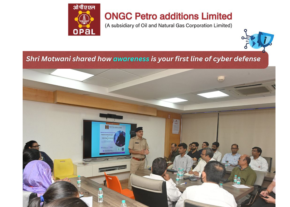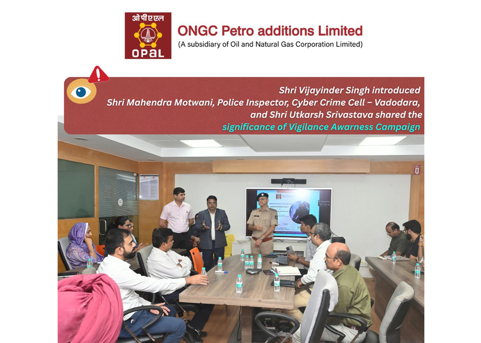 As part of the Vigilance Awareness Campaign 2025, ONGC Petro additions Limited (OPaL), Vadodara, organized a Capacity Building Program on Cyber Hygiene and Security on 9th October 2025. The initiative aimed to educate employees on responsible digital practices and enhance awareness about evolving cyber threats in today’s interconnected world.