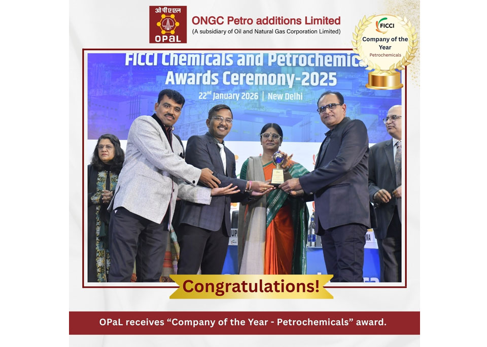 OPaL has been honoured with two prestigious national awards at the Federation of Indian Chambers of Commerce and Industry (FICCI) Chemicals & Petrochemicals Awards 2025, under the Petrochemicals (Non-MSME) category.